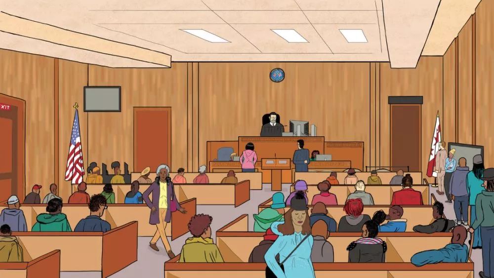 法官当然是坐在“审判庭”的正中。三人陪审团团员坐在侧面。别小看这个陪审团,根据美国的法律,有罪无罪全凭陪审团表决。